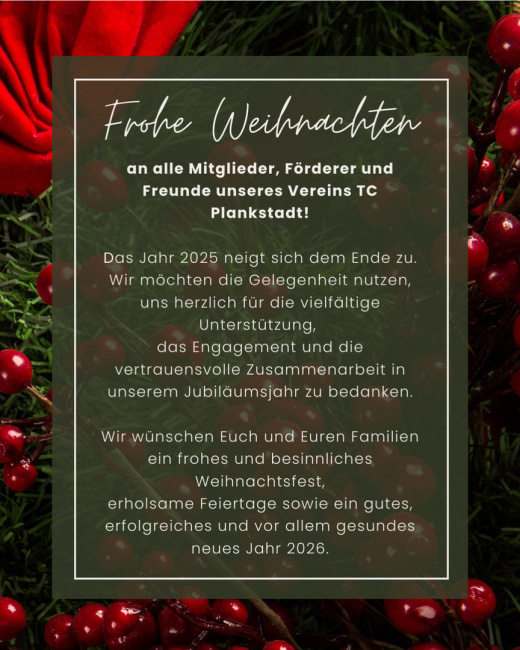 Der TC Plankstadt gegründet 1975, bietet auf einer der größten und schönsten Tennisanlagen der Region ein vielseitiges Angebot für die ganze Familie mit 10 Freiplätzen, 4 Hallenplätzen sowie Squash, Sauna und einem Restaurant mit großer Sonnenterrasse. Unser Club, der zahlreiche Jugendturniere ausrichtet und in vielen Altersklassen an den Punktspiel-Runden des BTV teilnimmt, legt besonderen Wert auf die
